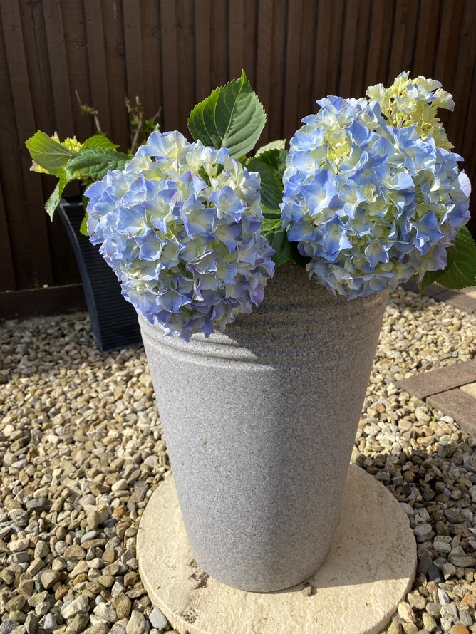It is crucial to research and understand the specific sunlight, water and space requirements for each plant. For example, if a particular area of your garden receives full sun but you have chosen an azalea plant that thrives in partial sunlight, it would be wise to find another suitable spot. Additionally, it is essential to consider the growth rate of plants are some may take several years to reach the optimum height. This knowledge can help you strategically place fast-growing shrubs to conceal or enhance specific areas of your garden. As you can see I've used a larger pot for this Hydrangea as their roots are aggressive and can quickly fill smaller pots. they need to be watered twice a week in summer but can tolerate full sun.