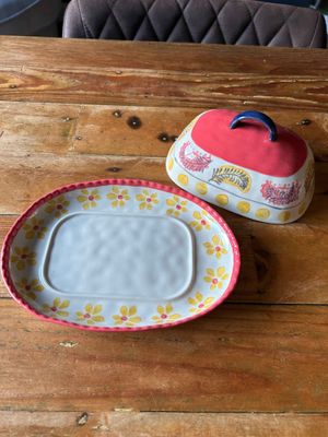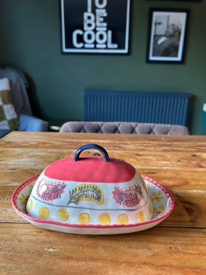 Add a touch of elegance to any kitchen or dining table with this hand painted butter dish.