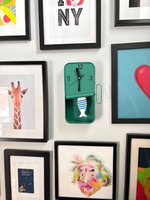 Add a playful touch to your walls with this green sardine tin pendulum wall clock. Featuring a blue and white fish that gently swings as a pendulum, this quirky clock brings movement, charm, and a hint of coastal nostalgia to your space.