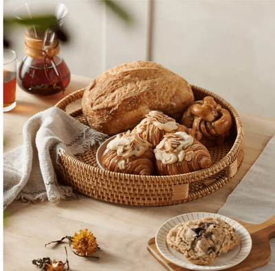 30 cm Rattan Tray - Round Hand Woven Wicker Serving Tray