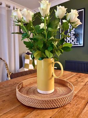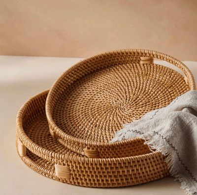 Handwoven trays from durable, organic plant fibres by skilled artisans in small workshops in Vietnam. available in two sizes, they come with handles for use as breakfast trays or simply as a charming centrepiece. 35cm/14"